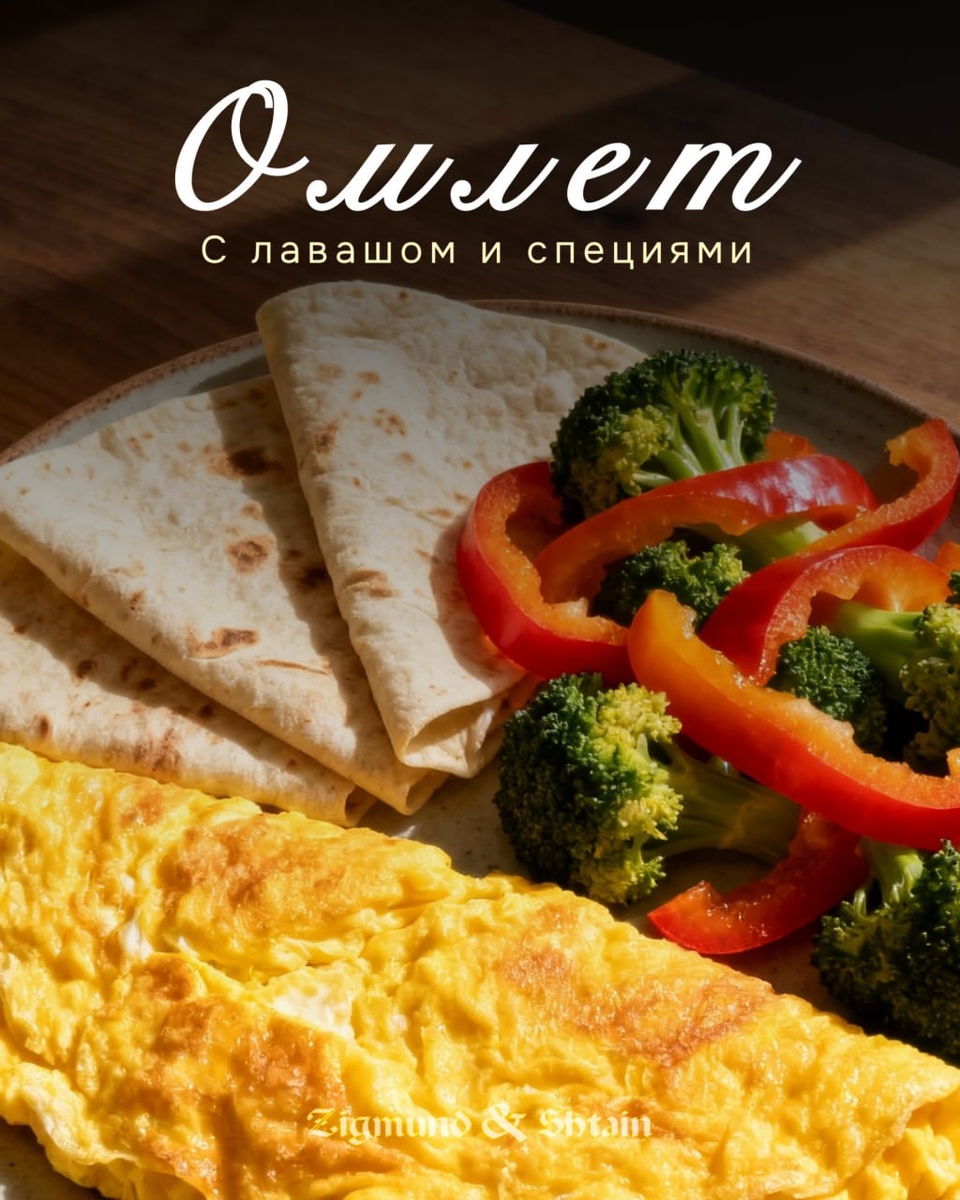 Лёгкий омлет с овощами и пряными травами, который отлично подойдёт для завтрака или позднего ужина. Ингредиенты: Приготовление: Яйца взбить с молоком, солью и специями. Перец нарезать соломкой, брокколи разобрать на соцветия, отварить 5 минут. Обжарить перец и брокколи на масле на плите Zigmund & Shtain 4 минуты. Залить яичной смесью, добавить кусочки лаваша. Готовить под крышкой 8–10 минут на медленном огне. Лёгкий и ароматный завтрак, который даёт энергию на весь день. #Завтрак