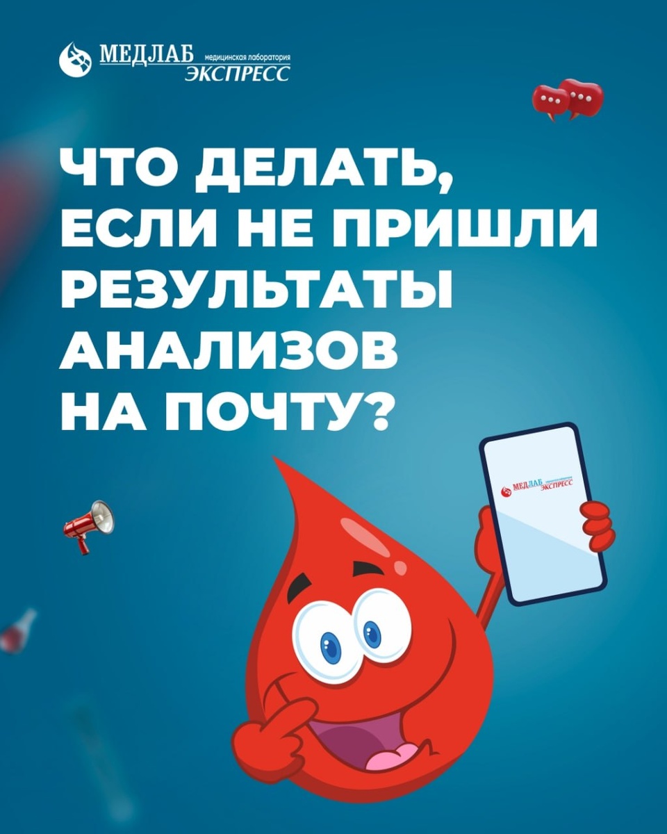 ? Смотрите нашу инструкцию! 🙌🏼 Что нужно проверить в первую очередь: 📍Дату готовности исследований Если вы сдавали несколько анализов, то результаты придут в срок, указанный на вашем счете-квитанции. Чаще всего это дата готовности самого «долгого» исследования. Счет-квитанцию вам выдают после оплаты анализов на заборном пункте. 📍Папку «Спам» и «Промоакции» К сожалению, иногда письмо с результатами попадает именно туда. Посмотрите, вдруг файл находится именно там. 📍Электронную почту в бланке заказа Проверьте, верно ли был указан адрес электронной почты при оформлении документов. Если все проверили, а письма все равно нет — не переживайте. В карточках рассказываем про альтернативные способы получить результаты 👆🏻
