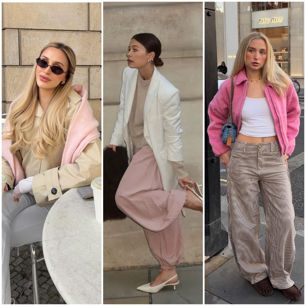 В этом сезоне советую присмотреться к сочетанию нежно-розового цвета с нейтральным бежевым. Причём, комбинировать можно абсолютно по-разному. Например, выбрать розовый лонгслив, сместить его на брюки или поставить точечный акцент с помощью аксессуаров — в любом случае смотрится очень нежно и актуально.