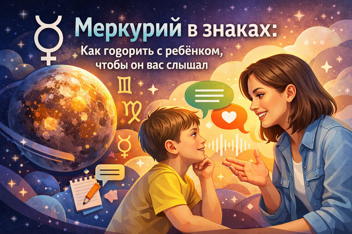 «Мы вообще не можем договориться» И в этот момент почти всегда кажется, что проблема в ребёнке - он упрямый, невнимательный, сложный. Но правда в другом. Ребёнок вас не игнорирует. Он просто НЕ ВОСПРИНИМАЕТ информацию в той форме, в которой вы её даёте. В астрологии за это отвечает Меркурий — планета мышления, речи и восприятия информации. И у каждого ребёнка он работает по-разному. Если вы говорите «не на его языке» — он действительно вас не слышит. Давайте разберёмся, как это работает 👇 Это быстрый, импульсивный тип мышления. Ребёнок схватывает суть мгновенно, но так же быстро теряет интерес, если информация затянута или подаётся без энергии. Как говорить: