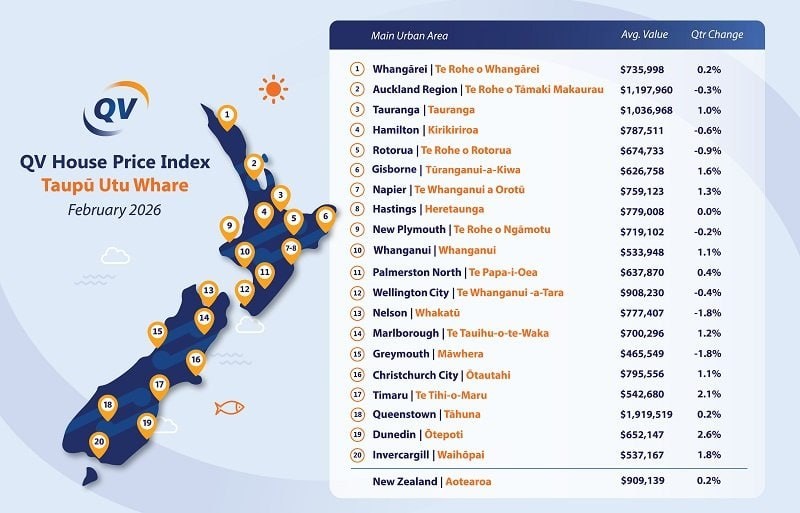 Если быть точнее, то это даже средняя "ценность жилья" (Capital Value), а не реальные данные по продажам. Продавать могут, как дешевле, так и дороже. Свежий отчет от февраля 2026. Видим, что у нас три города в стране, где средняя цена выше 1 млн нзд. Если попытаться посчитать, что такое "среднее жилье" в НЗ, то получится, что это чаще всего дом примерно на 180 кв метров, 3-4 спальни, 2 ванные комнаты, гараж. Таким образом, сравнивать со средним жильем, к примеру, в РФ (где это квартира трешка) получается не релевантно. Как и средние доходы сравнивать сложно, учитывая корявость официальных данных и разрыв между слоями (который в НЗ меньше). Однако, я как-то пытался сопоставить более менее сопоставимое, получились два видео, интересные и показательные: - Где дороже жить - в НЗ или в РФ? - Где проще купить жилье - в НЗ или в РФ? Так что, просто лучше считать это индивидуальным ориентиром по стоимости в регионах страны. Зарплаты по регионам отличаются минимально, но количество вакансий