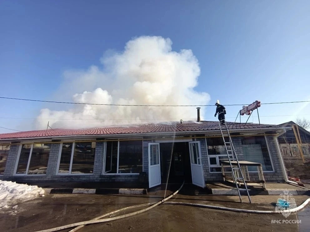 Пожар произошел в кафе в селе Богоявление Дальнеконстантиновского округа Нижегородской области 25 марта. Об этом сообщает пресс-служба регионального ГУ МЧС России. Происшествие случилось в здании на улице Шоссейной. К приезду спасателей огонь бушевал на крыше на площади 400 квадратных метров. Сейчас на месте работают 12 человек и 5 единиц техники. В результате происшествия никто не пострадал. Ранее сообщалось, что пожар случился на Рождественской в Нижнем Новгороде. Самые интересные и срочные новости читайте у нас в Telegram и MAX