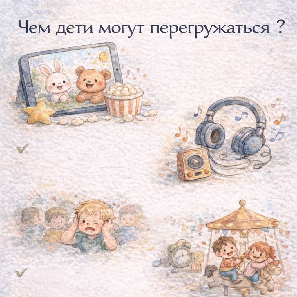 Как предупредить эмоциональный перегруз у ребёнка Чаще всего истерика начинается не «вдруг». Она начинается намного раньше, просто мы не всегда замечаем первые сигналы. Эмоциональный перегруз — это когда нервная система ребёнка уже устала, но он ещё пытается держаться. ⸻ 🚦 Как понять, что ребёнок начинает перегружаться Обратите внимание на маленькие признаки: — становится более капризным без причины — начинает цепляться к мелочам — громче говорит — больше двигается или, наоборот, «замирает» — трет глаза, лицо — хуже слышит просьбы Это сигнал: ресурс заканчивается. ⸻ 🧠 Почему важно реагировать раньше Когда ребёнок уже в истерике — его мозг в режиме «шторм». Гораздо легче помочь, пока он ещё «на берегу», а не в центре бури. ⸻ 🌊 Что можно сделать 1️⃣ Вода Вода отлично регулирует нервную систему. — переливать — мыть игрушки — пускать кораблики — просто мыть руки под тёплой водой Вода «снимает» напряжение через сенсорный канал. ⸻ 2️⃣ Крупа, песок, тактильность — пересыпать крупу — искать