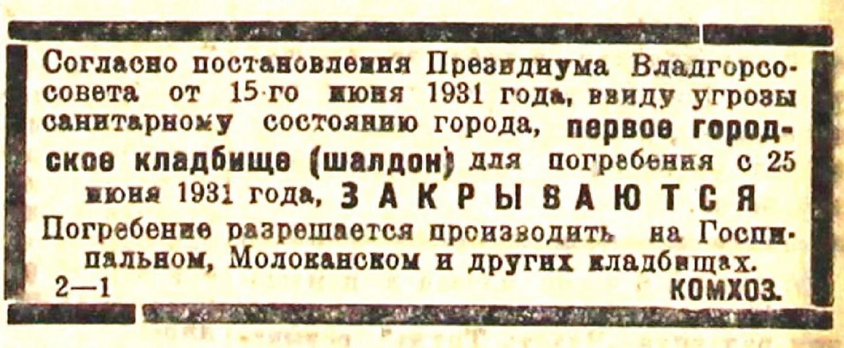 Из истории закрытия 1-го городского кладбища (сейчас парк за СОГУ). Из газеты «Власть труда». (@oldvladikavkaz1)