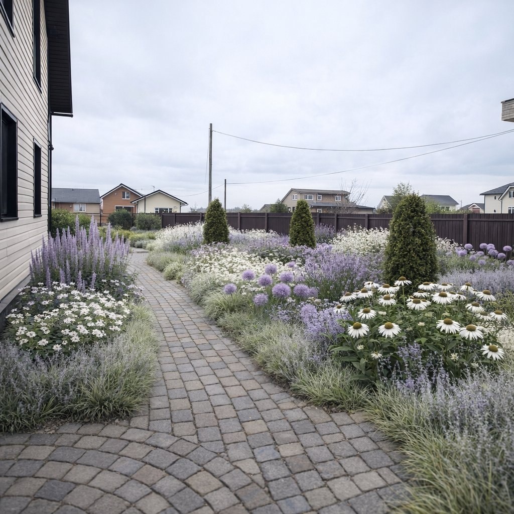 » Бывает так: накупили всего красивого, посадили — а на участке визуальный хаос. Разная высота и мешанина цветов «съедают» весь эффект. В ландшафтном дизайне есть четкие правила ярусов, которые мы используем в проектах: 📦 Задний план (80–120 см): Фон из кустарников или высоких многолетников. 📦 Средний план (40–70 см): Основной объем. 📦 Передний план (15–30 см): Окаймление и заполнение пустот. Правило профи: 1 доминанта + 2 акцента. Сажайте растения не по одному, а куртинами по 3–5 штук и повторяйте эти группы. 📌 Сохраните этот план структуры!
