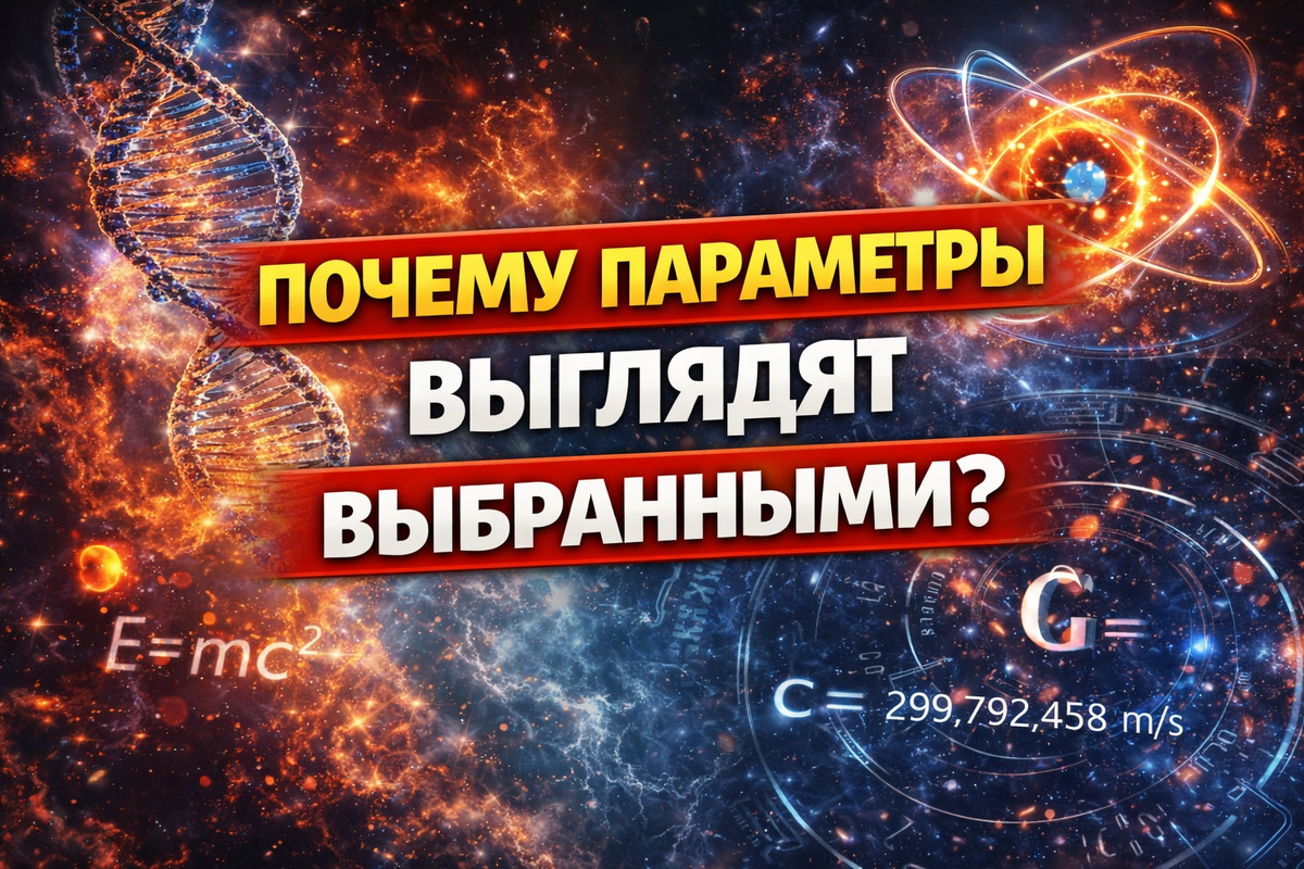 Есть ощущение, которое появляется почти у всех, кто хоть немного углубляется в физику. Параметры Вселенной выглядят не случайными. Массы частиц, силы взаимодействий, скорость света, постоянная Планка - все эти величины лежат в очень узком диапазоне, где возможна сложная структура. Чуть сдвинь их - и не будет ни атомов, ни звезд, ни химии. И возникает почти провокационный вопрос. Почему все это выглядит так, будто кто-то «подбирал значения»? Это не преувеличение. Например, если изменить силу сильного взаимодействия всего на несколько процентов: Если изменить массу электрона: Если изменить гравитационную постоянную: То есть параметры находятся в узком «окне». И это выглядит как настройка. Есть важный контраргумент. Мы видим только одну Вселенную. Мы не знаем, насколько широк диапазон возможных параметров. Возможно, «окно» не такое узкое, как кажется. Или существуют другие устойчивые конфигурации, просто совсем не похожие на нашу. Мы оцениваем все через призму жизни, похожей на нашу. Это