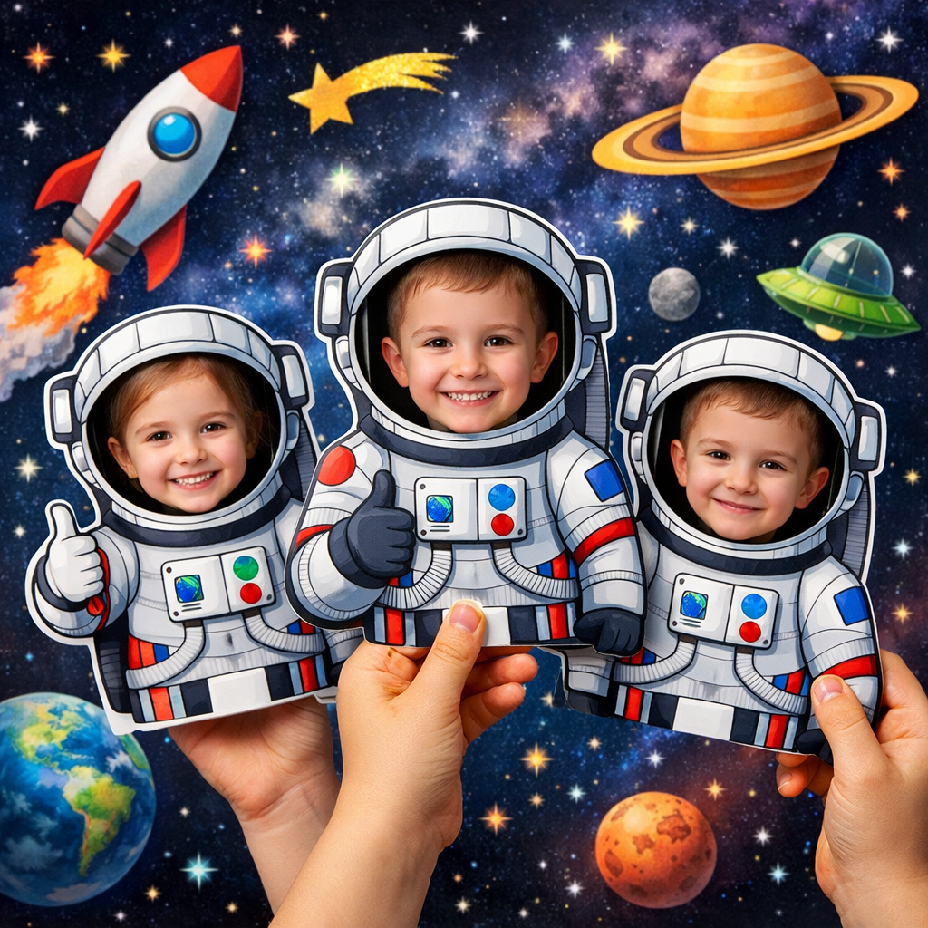 Есть занятия, которые дети делают за 2 минуты… и забывают. А есть такие, которые родители фотографируют и отправляют в семейные чаты. Разница — в подаче. И это занятие на день космонавтики в детском саду — как раз из второй категории Не раздавайте шаблоны сразу. Сначала покажите пример: «Смотрите, это я — космонавт» И показываете фигурку… со своим лицом. Пауза. Улыбки. Интерес. Дальше: