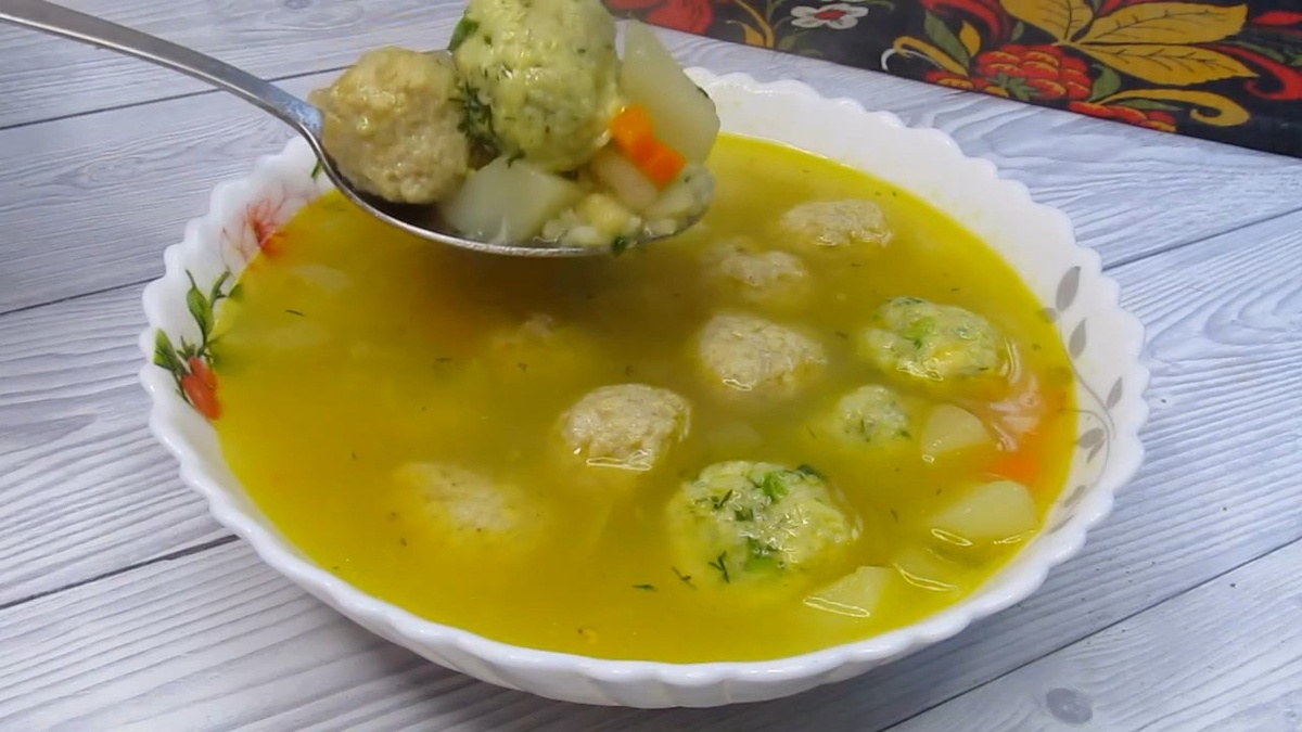 Не удивляйтесь, но сегодня у меня суп. Насыщенный, бархатный, нежный суп, от которого невозможно оторваться! Простота приготовления не умаляет его исключительного вкуса. Готовить его одно удовольствие, когда готовишь что-то новое всегда так. Пробуйте, обязательно пробуйте! Кстати, это первое правило кулинарии - пробовать! Готовить и пробовать! Глядишь и что-то новое получится. Подготовим овощи. Нарезаем луковицу: одна часть её для зажарки, другая — в фарш. Морковь нарезаю мелкими кубиками, красиво в супе будет. Обжариваем лук до прозрачности, добавляем морковь. Лук пожелтел, это морковь каротин отдала, за что мы её и уважаем. Зажарка готова. Дальше беру фарш, сегодня свиной. Солю, перчу его, перемешиваю. Формирую из него фрикадельки. 20 штук получилось. А вот дальше немного необычно. Кусочек сыра тру на средней тёрке. Добавляю немного зелени. Лучше взять укроп и зелёный лук. Небольшой кусочек сливочного масла растоплю и добавлю. Посолю, поперчу. Кладу яйцо. И одну, может две сто