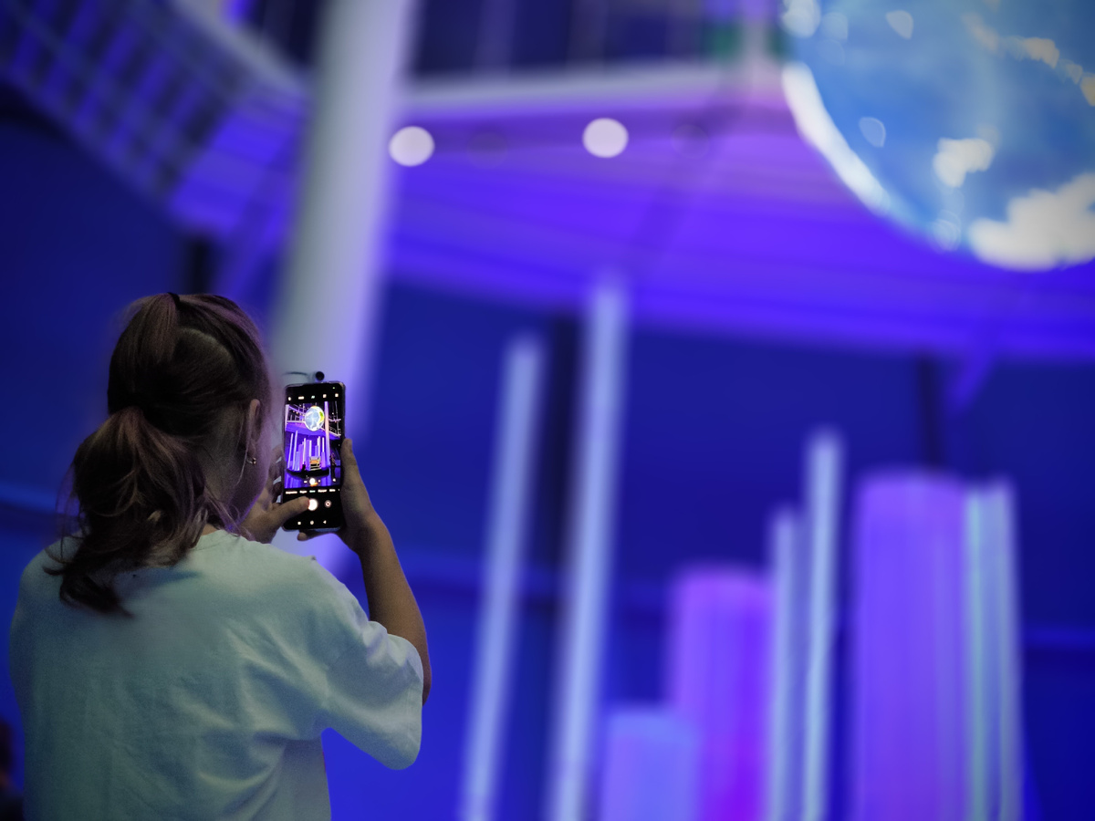 Зал «Большой Океан» – сердце нового экспозиционно-образовательного центра и одно из самых впечатляющих его пространств. Здесь посетитель оказывается будто внутри океана, огромного, изменчивого и многообразного. Данный зал представляет Мировой океан как необъятную стихию. В то же время он концептуально объединяет все лаборатории экспозиционно-образовательного центра «Планета Океан». Свой путь посетитель начинает из морских глубин, и под его ногами лежит физиографическая карта мира, большую часть которой занимает Мировой океан. В самом большом, объемом в 650 тонн, аквариуме парят скаты, акулы и другие подводные обитатели. Над аквариумом возвышается масштабная видеоинсталляция, представляющая собой 16-метровый экран, стилизованный под волну. Она увлекает посетителя в видеопутешествия по открытым просторам океана и истории планеты. «Голос океана» – это воплощение глубинных процессов, переданных с помощью музыки электрооргана, который приводит в движение светодинамическую инсталляцию из акр