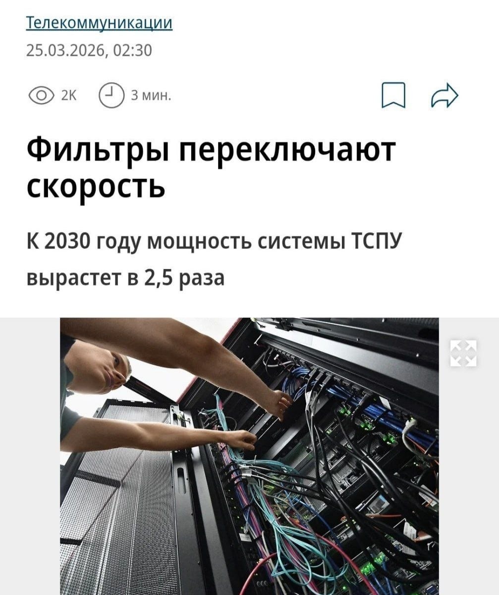 К 2030 году пропускную способность систем блокировки (ТСПУ) увеличат в 2,5 раза — до 954 Тбит/с. Этого хватит, чтобы анализировать весь трафик рунета с запасом под его прирост. Официально это делается ради обеспечения «сетевого суверенитета и информационной безопасности», но на деле апгрейд ТСПУ позволит властям проще вводить новые блокировки и успешнее бороться со способами их обхода. На модернизацию потратят почти 15 млрд рублей, а итоговая стоимость проекта составит 84 млрд рублей. Заря | Новости - Подписаться