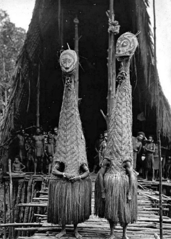 Мужской дом, а вокруг — танцоры в костюмах, которые выглядят так, будто их шили на вечеринку в стиле "Джунгли"! 🌴 Эти ребята явно не стеснялись своего стиля и решили, что чем ярче, тем лучше! 😂 Кто бы мог подумать, что в те времена можно было так весело проводить время? В общем, если вы думали, что современные танцы — это что-то новенькое, то посмотрите на этих парней! Они точно знали, как привлечь внимание!
