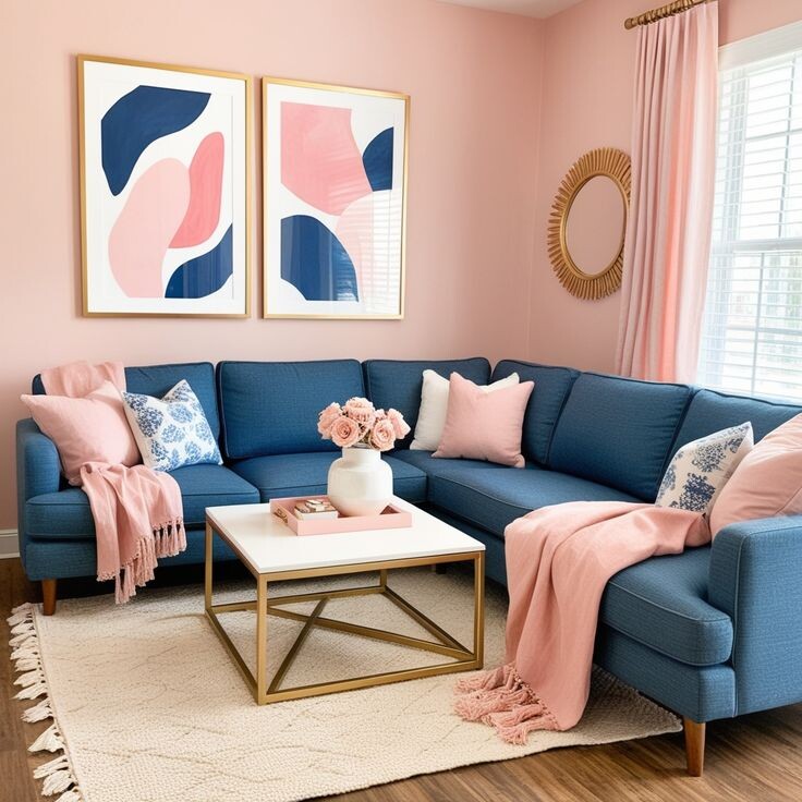 · Пудрово-розовый + небесно-голубой — классика для спален и зон отдыха. Создаёт ощущение уюта и лёгкости.