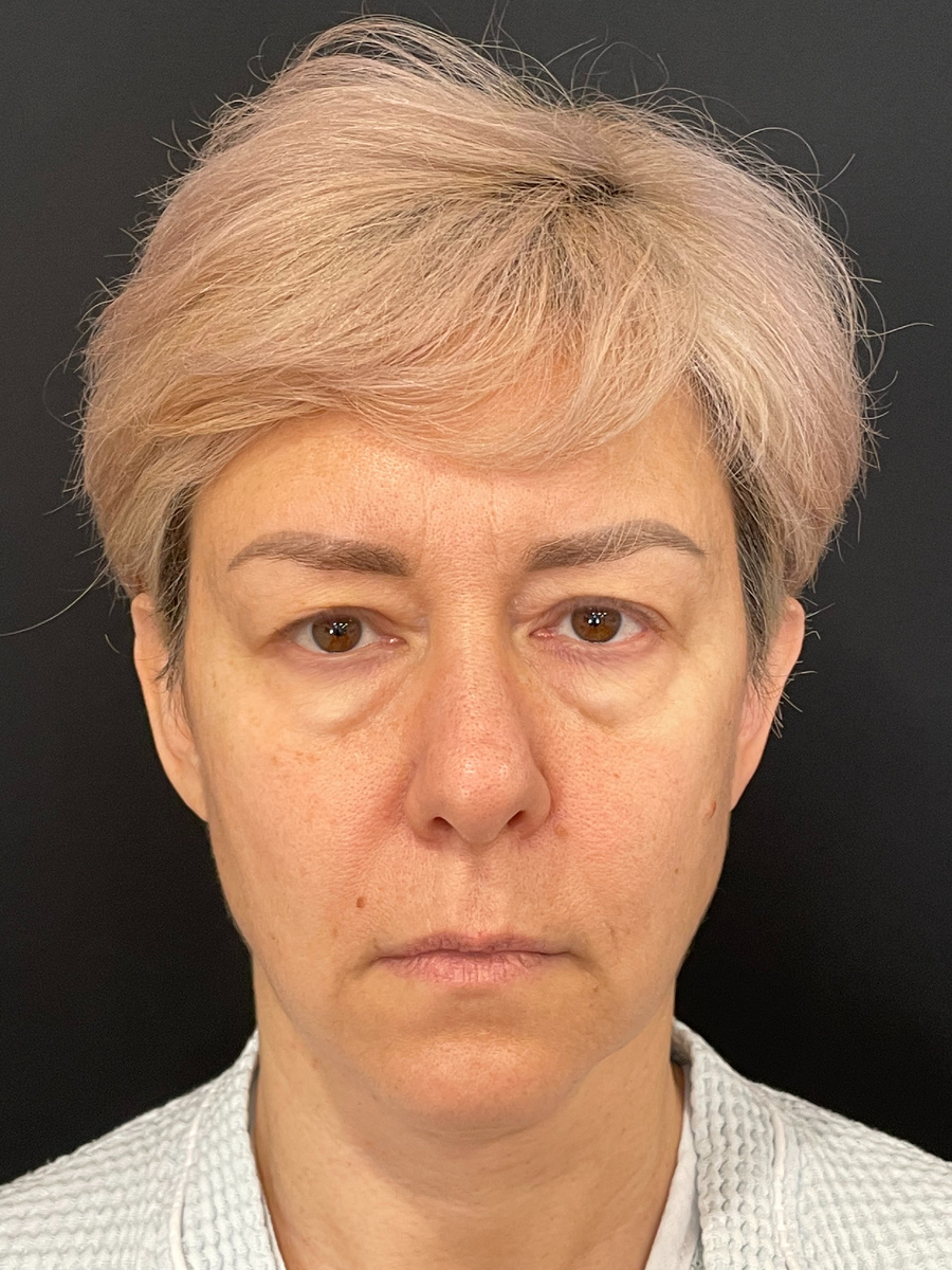Почему попытка омолодиться только за счёт блефаропластики часто заканчивается разочарованием? И почему это одинаково работает — и в 30 лет, и после 50. Блефаропластика не даёт полноценного омоложения, если проблема не ограничивается кожей век. И это работает одинаково — и в 30 лет, и после 50, когда причины «тяжёлого» взгляда лежат глубже. Пациентка обратилась с достаточно типичным запросом — хотелось убрать нависание верхнего века и получить более открытый, отдохнувший взгляд. На первый взгляд ситуация действительно напоминала классический случай для блефаропластики: есть избыток кожи, есть ощущение тяжести в области глаз. Но при более внимательном разборе стало очевидно, что основная проблема не в коже века. Значительная часть нависания формировалась за счёт опущения брови и височной зоны. Кожа века в этом случае лишь «подстраивается» под изменившееся положение тканей, и если работать только с ней, результат будет неполным. И вот здесь возникает принципиальный момент. Если убрать тол