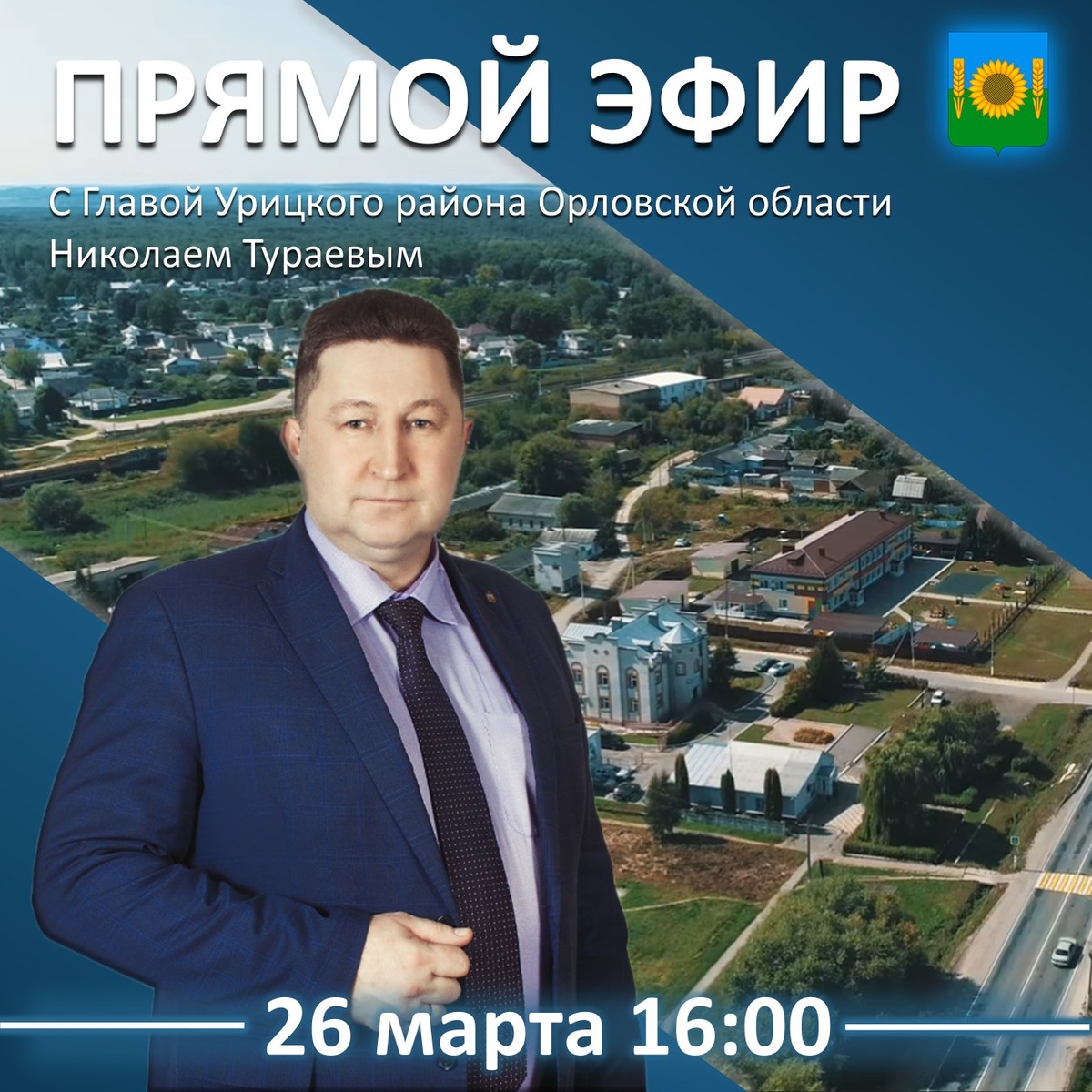 ! ➡️26 марта в 16:00 глава района Николай Тураев проведёт прямой эфир, в ходе которого ответит на ваши вопросы. 📍Эфир будет проходить на его личной странице ВКонтакте. 💬Задавать вопросы можно уже сейчас в комментариях под этим постом. Не упустите возможность получить ответы лично от главы района! ✅Ждём вас на прямом эфире! #УрицкийРайон #АдминистрацияУрицкогорайонаОрловскойобласти