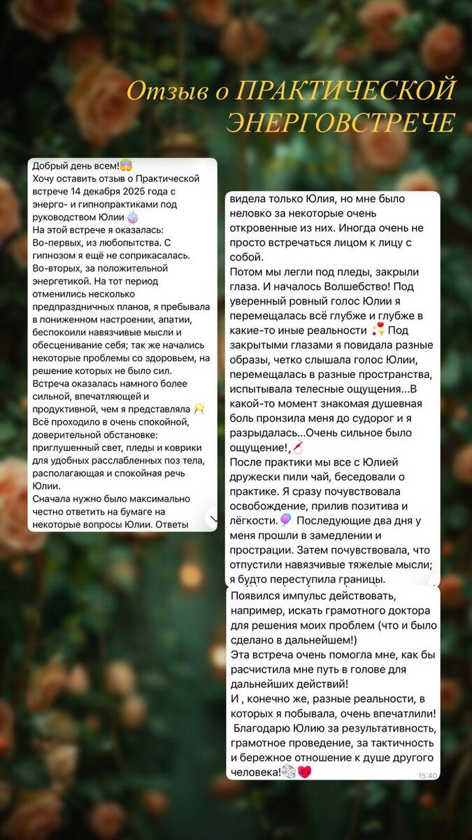 ☀️ Делюсь с вами обратной связью о практической Энерговстрече одной из участниц💕 Готовлю новую встречу в апреле и это будет, как обычно, работа с нашими эмоциями, состояниями, убеждениями и конечно с энергетикой, но в новом формате 🆕 Мероприятие анонсирую заблаговременно ✅ #отзывы