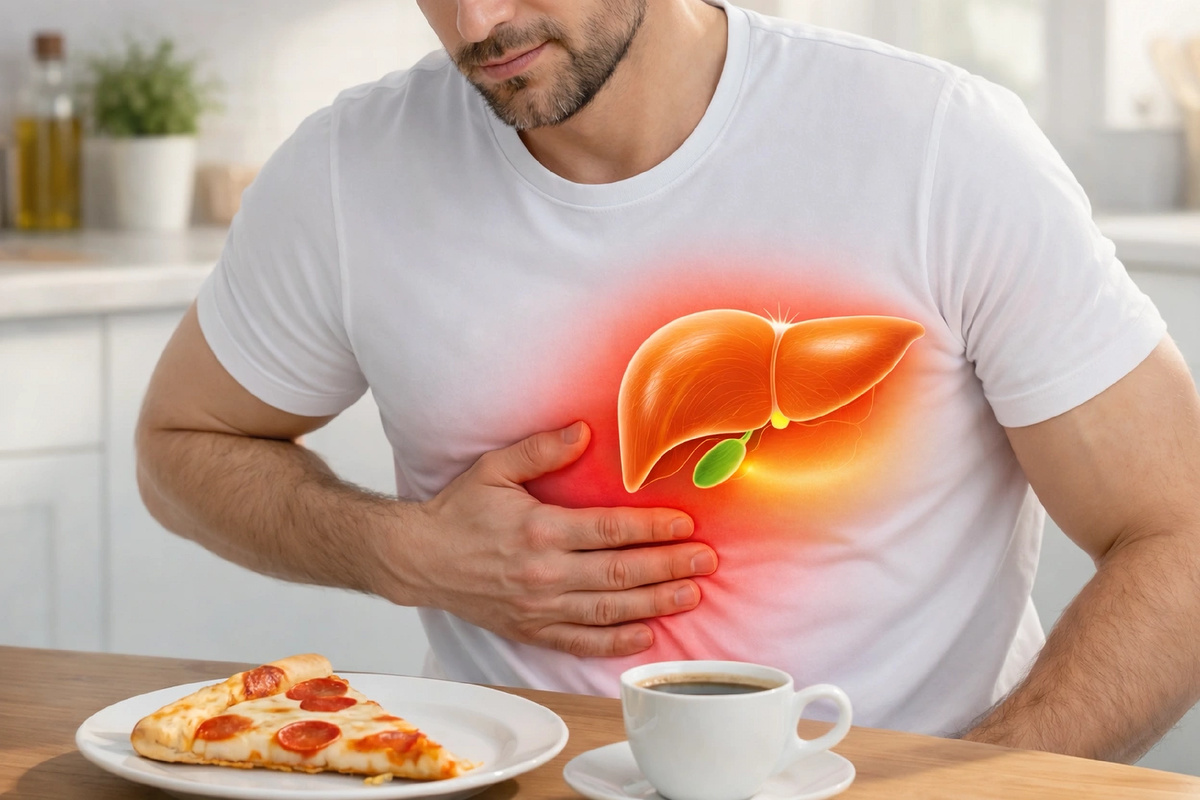 Не обязательно бежать марафон — достаточно 30–40 минут ходьбы в день и пары тренировок в неделю. На практике регулярное движение у части людей уменьшает дискомфорт после еды. Но если есть боль справа под рёбрами или повторяющиеся приступы после жирной еды, это уже повод для обследования.