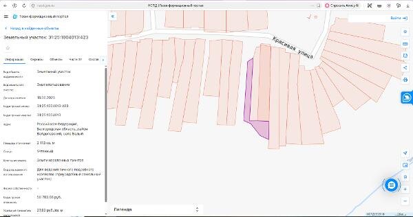 Название: Земельный участок из земель населеннх пунктов с кадастровым номером 31:25:1004013:423, площадью 2113 кв.м., расположенный по
