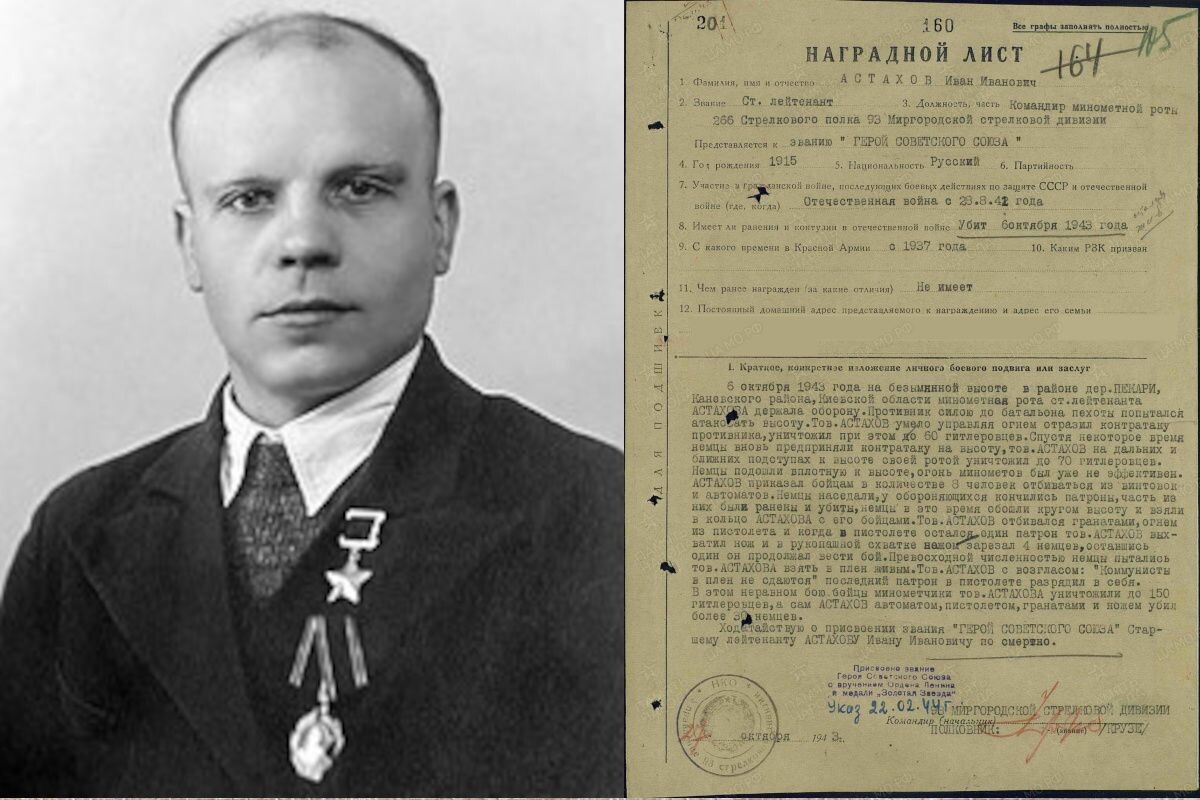 Сегодня, 25 марта в Калужской области вспоминают Героя Советского Союза Ивана Астахова – офицера, прошедшего Великую Отечественную войну и ставшего символом мужества и верности присяге. Об этом пишут «Бренды России». Иван Астахов родился 25 марта 1915 года в деревне Крутая Мосальского уезда Калужской губернии в крестьянской семье. После шести классов школы он уехал в Москву, где окончил ФЗУ при заводе «Компрессор» и устроился работать на предприятие. До войны его жизнь была связана с трудом на заводе – судьбой, которую он, по воспоминаниям современников, не хотел менять. С началом Великой Отечественной войны 28 августа 1941 года Астахов был вновь призван в армию. На фронте он быстро проявил себя: командовал стрелковым отделением, поднимал бойцов в атаки, участвовал в рукопашных схватках. После тяжелого ранения под Великими Луками прошёл офицерские курсы и вернулся на передовую уже командиром миномётной роты. Осенью 1943 года подразделение Астахова участвовало в форсировании Днепра. 6 о
