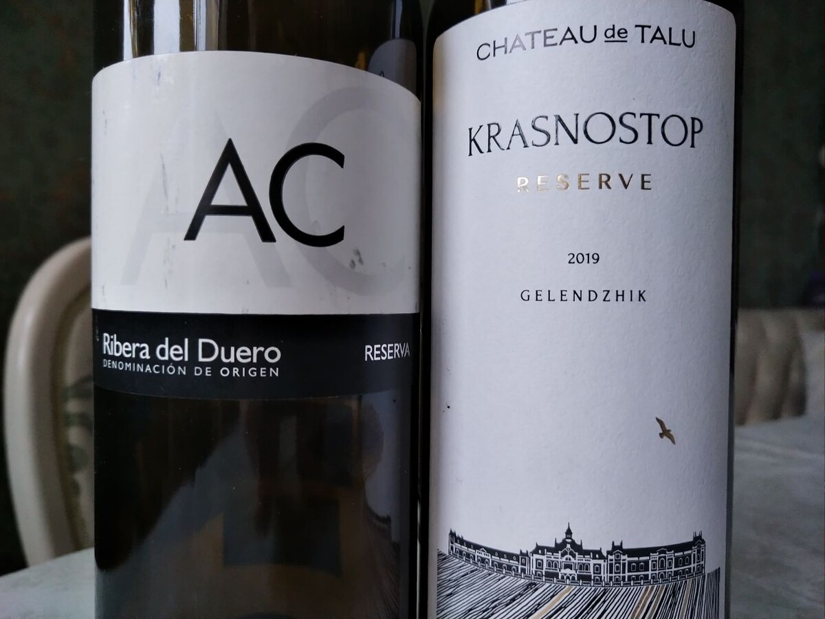 Так как у нас маловато темпранильо, а у Испании маловато красностопа, решил сравнить наш красностоп и их темпранильо, ориентируясь на одинаковый ценовой уровень вин. Chateau de Talu Reserve Krasnostop - кубанское вино, красностоп урожая 2019 года, розлив март-2022. Взял в Краснодаре, будучи проездом, года 3-4 назад, в магазине "Кубанские вина". При цене тогда 1950 рублей, со скидкой, которую прочитал у блогера Валерии Иванниковой, оплатил 1755 руб. Сейчас, ясное дело, такой цены не найти. Arrocal AC Reserva, Испания, Ribera del Duero. Темпранильо урожая 2019 года, розлив январь-2022. В течение 2025 года, да и сейчас, вполне можно поймать со скидкой 50% в "Отдохни". У меня вышло купить за 1850 руб. Chateau de Talu Reserve Krasnostop Плотный, но не летучий аромат черных ягод, слива, черешня, шелковица. Гуашь в развитии. Возможно, чуть черноплодки. Специи. Аромат сладковатый, есть нюансы чернослива. Сладкое на вкус, есть ваниль. Вкус с плотный, спокойный. Танины бархатистые. Вино, наверн