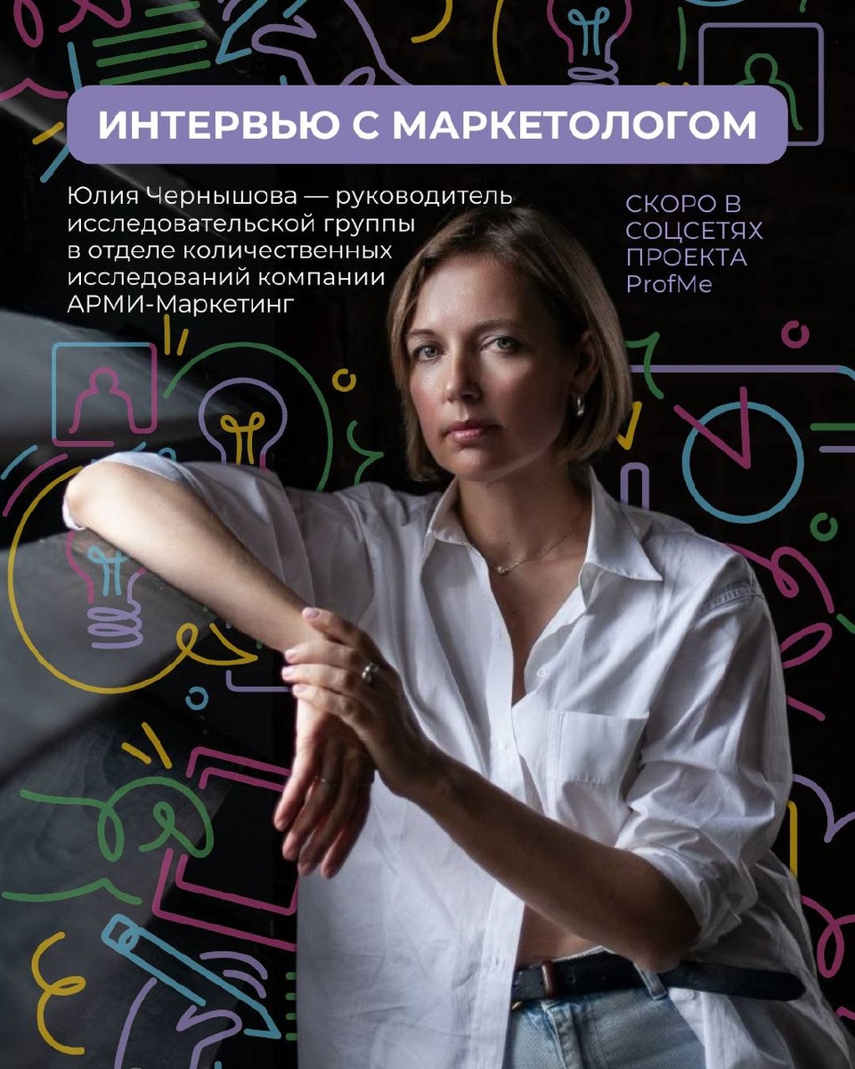 💡 #интервью_profme Готовим для подростков новый продукт — тест-драйв профессий, и напоминаем, как важно подросткам расширять кругозор и узнавать новое о профессиях и рынке труда. ➡️ В интервью с профессионалами мы стараемся раскрыть профессию через призму личного опыта, поговорить о реальных задачах, проблемах и подводных камнях в карьере. Интервью помогают подросткам понять профессию лучше, взвесить за и против, примерить на себя возможную карьеру. Серию следующих интервью посвящаем социально-экономическим профессиям. Рады представить гостя предстоящего выпуска: ⚪️Юлия Чернышова — руководитель исследовательской группы в отделе количественных исследований компании АРМИ-Маркетинг. Юлия получила социологическое образование, которое стало отличной основой для карьеры в коммерческих маркетинговых исследованиях. Выпуск выйдет на этих выходных! А пока у вас есть возможность задать вопросы гостю: пишите их в комментариях, а мы зададим все вопросы Юлии в интервью и расскажем все самое инт