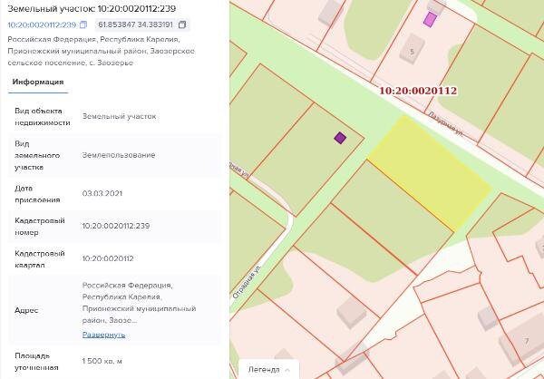 Название: Земельный участок с кадастровым номером 10:20:0020112:239 Площадь 1500 кв