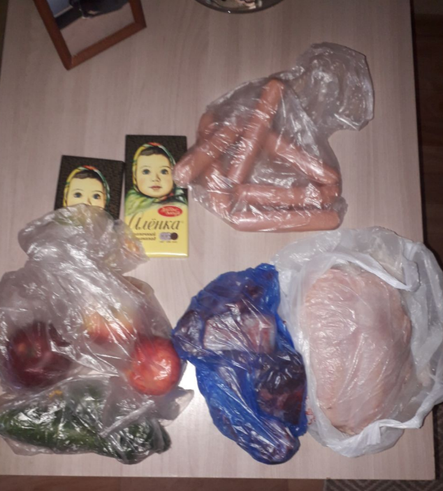 Немного Мише всяких вкусняшек (в садик перекусы)-огурцы, яблоки, шоколадки. Вкусные сосиски, грудку куриную и говяжьи косточки на первое.