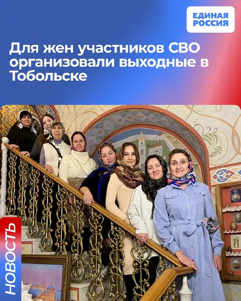 Насыщенные выходные для активисток Союза семей военнослужащих Тюменской области, участниц проекта «Жизни после Победы» прошли благодаря «Женскому движению Единой России». Родные участников спецоперации посетили места, связанные с духовной жизнью Тобольска, пообщались с митрополитом Тобольским и Тюменским Димитрием. За организованное путешествие жены бойцов поблагодарили регионального координатора «Женского движения Единой России» Светлану Иванову. 💬 Координатор партийного проекта «Женское движение Единой России» в области, председатель Тюменской городской думы Светлана Иванова: «Поддержка семей бойцов СВО — наша обязанность. Отцы, мужья, сыновья, братья тюменских женщин самоотверженно отстаивают мир, настоящее и будущее российских поколений. Рада, что получилось организовать такие выходные. И благодарю за теплые слова». 📲 MAX | 💙 ВК | 💬 ОК
