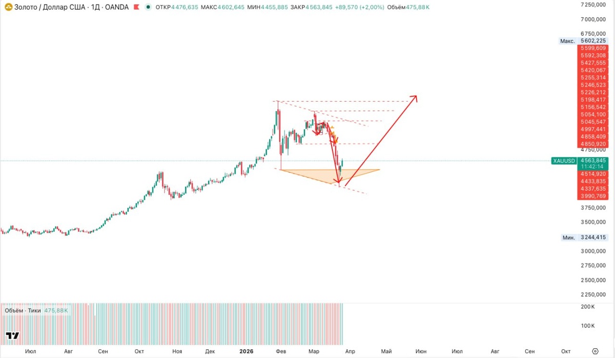 Золото. Напомню - план был такой. Факт - на 100% отрабатываем сиутацию. Поэтому встал в лонг. План на графике не поменялся