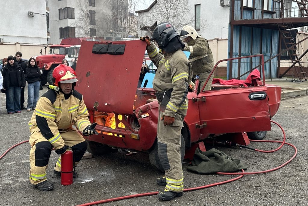 А сегодня они продемонстрировали свое мастерство студентам Анапского сельскохозяйственного техникума. Совместное мероприятие для молодежи провели сотрудники Госавтоинспекции и 11-го пожарно‑спасательного отряда. Перед ребятами развернулась зрелищная спасательная операция. По легенде автомобиль наехал на препятствие, и в результате оказались заблокированы и травмированы водитель и пассажир. Пожарным необходимо было деблокировать пострадавших и осторожно переместить их в безопасное место. В ходе спасательной операции произошло возгорание, это добавило сложности в выполнении задания. Но анапские специалисты быстро и профессионально справились с задачей. Процесс ликвидации последствий ДТП студентам продемонстрировали Станислав Заорбрайт, Михаил Абраменко, Александр Сетхалиев, Алексей Лукин, Роман Разумов, Антон Ганапольский, Василий Стурза. Эта же команда представляла Анапу на краевых соревнованиях. Анапчане заняли первое место и получили почетное звание «Лучшая команда МЧС России по прове
