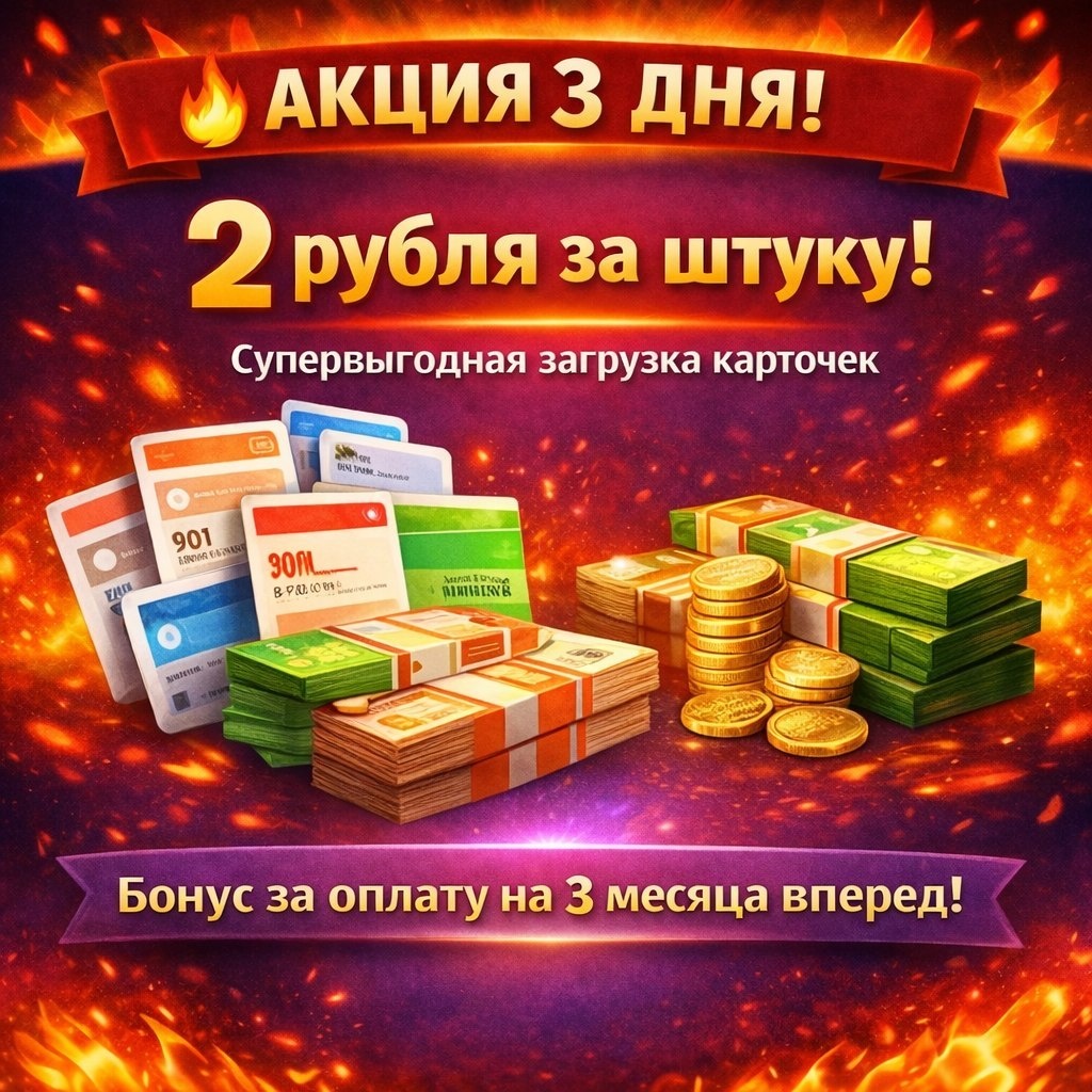 ! Загрузка карточек по суперцене — всего 2 рубля за штуку! Отборные карточки, без брака ✅ 10 000 артикулов = 20 000 ₽ (вместо 30 000 ₽) Успей быстро наполнить магазин свежими товарами! А ещё выгодная акция на обновление цен и остатков: При оплате за 3 месяца вперёд. Например: Тариф «Про» — обычно 13 000 ₽/мес При оплате за 3 месяца — всего 30 000 ₽ (по 10 000 ₽ в месяц) ⚠️ Внимание! В ближайшее время индивидуальные скидки будут существенно сокращены. Успейте воспользоваться акцией по самой низкой цене!
