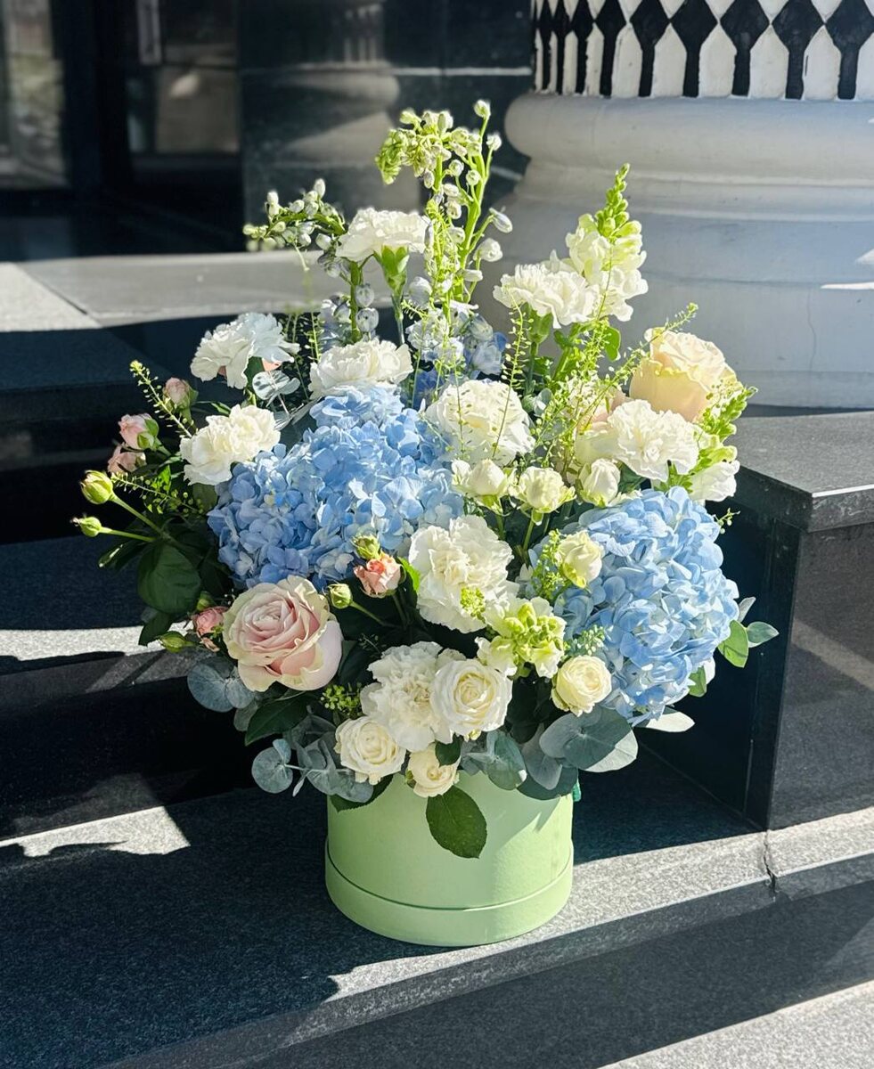 Пышная гортензия и прекрасный дельфиниум от «Студии Цветов 55»!🩵