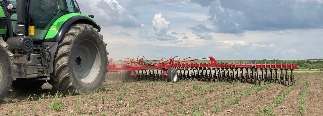 Ротационные бороны — это бесприводные машины, предназначенные для поверхностного рыхления почвы, аэрации верхнего слоя, разрушения почвенной корки, предотвращения испарения влаги и уничтожения нитевидных всходов сорняков. Они особенно эффективны на пропашных культурах, включая подсолнечник. Рабочие органы ротационных борон — дисковые роторы с ножевыми, игольчатыми, зубовыми или лепестковыми элементами. При движении трактора колёса начинают самопроизвольно вращаться, заглубляясь в почву на глубину 3–5 см. Это разрушает поверхностную корку. При выходе колеса из земли происходит «микровзрыв», благодаря которому в почву нагнетается воздух. Азот из воздуха переходит в плодородный слой и усваивается растениями, что может снизить необходимость в азотных удобрениях. Оптимальная фаза для обработки — 2–6 пар листьев. Начинать работу можно уже в фазе от 2 настоящих листьев, но чем выше растение, тем выше риск его повреждения. Безопасной считается работа до высоты растений 25–30 см. Если расте