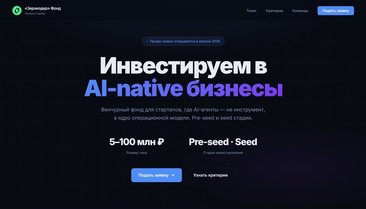 В апреле университет «Зерокодер» запускает первый в стране инвестиционный фонд для стартапов, в основе которых лежат автономные ИИ-агенты. Об этом SM only news рассказали в пресс-службе образовательной платформы. Объем инвестиций в один проект составит от 5 до 100 млн рублей в зависимости от стадии развития. Фонд сфокусируется на pre-seed и seed-проектах с ультракомпактными командами и открыт для фаундеров со всей России (включая тех, кто метит на зарубежные рынки). Оценивать стартапы будет комиссия из специалистов по автоматизации процессов с сильным именем в инвест-среде. В нее уже вошли гендиректор «Зерокодера» Кирилл Пшинник, сооснователь Qiwi Сергей Солонин и сооснователь Flocktory Дмитрий Мацкевич. ➡️ На стадии pre-seed ждут готовые прототипы с продуманной юнит-экономикой, собранные с помощью вайбкодинга. От seed-проектов потребуют подтвержденную выручку и доказательства того, что нейросети реально автоматизируют ежедневную рутину, а не просто красиво описаны в презентации. @