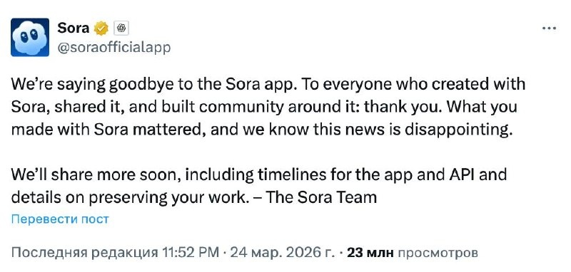 Вчера вечером OpenAI объявили, что прощаются с SORA. На самом деле, решение было не то чтобы ожидаемым, но лежало на поверхности. И вот почему: 1. Главное это юнитэкономика, вероятно, очень далека от того, чтобы сойтись. Публичные оценки доходят до $15 млн/день вычислительных затрат (≈ $5+ млрд/год в пересчете), при том что сама компания через руководителя Sora публично называла экономику «неустойчивой». Несложные расчеты, даже основанные только на прайсе в API, показывают, что маржа каждого ролика sora‑2, скорее всего, отрицательна. 2. При этом другие метрики далеки от привычных OpenAI. Если у ChatGPT WAU и ретеншен пользователя запредельные, то у SORA аналитики из a16z насчитали retention < 8% на 30‑й день. Хотя приложение и скачивали очень активно в самом начале, но охваты оно не держит. 2. В начале года OpenAI сами говорили, что компьют – их главный ресурс. Логично, что они стараются перераспределить его разумно, и сверхдорогой видеопродукт становится в этой картине самым страте