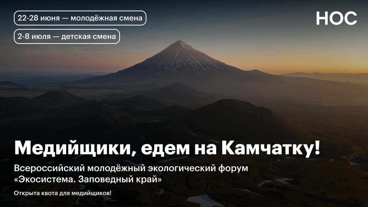 ! ⚡️ Интересуетесь экологией и готовы отправиться в путешествие? Мы открываем квоту приоритетного отбора для участников на Всероссийский молодёжный экологический форум «Экосистема. Заповедный край» ⏺ 22-28 июня — молодёжная смена ⏺ 2-8 июля — детская смена (14-17 лет) Более 600 участников, образовательный блок и полевая практика с выездами по локациям Камчатского края — насыщенная программа, которую будет интересно показать в крутых медиаформатах. Активисты молодёжных медиа будут жить в глэмпинг-лагере, примут участие в программе и получат возможность создать контент о поездке 📱 До 6 апреля подавайте заявку и отправляйте в бот НОС ФИО, регион проживания, вуз и ссылку на медиапортфолио ➡️ НОС: Телеграм | ВКонтакте | МАХ