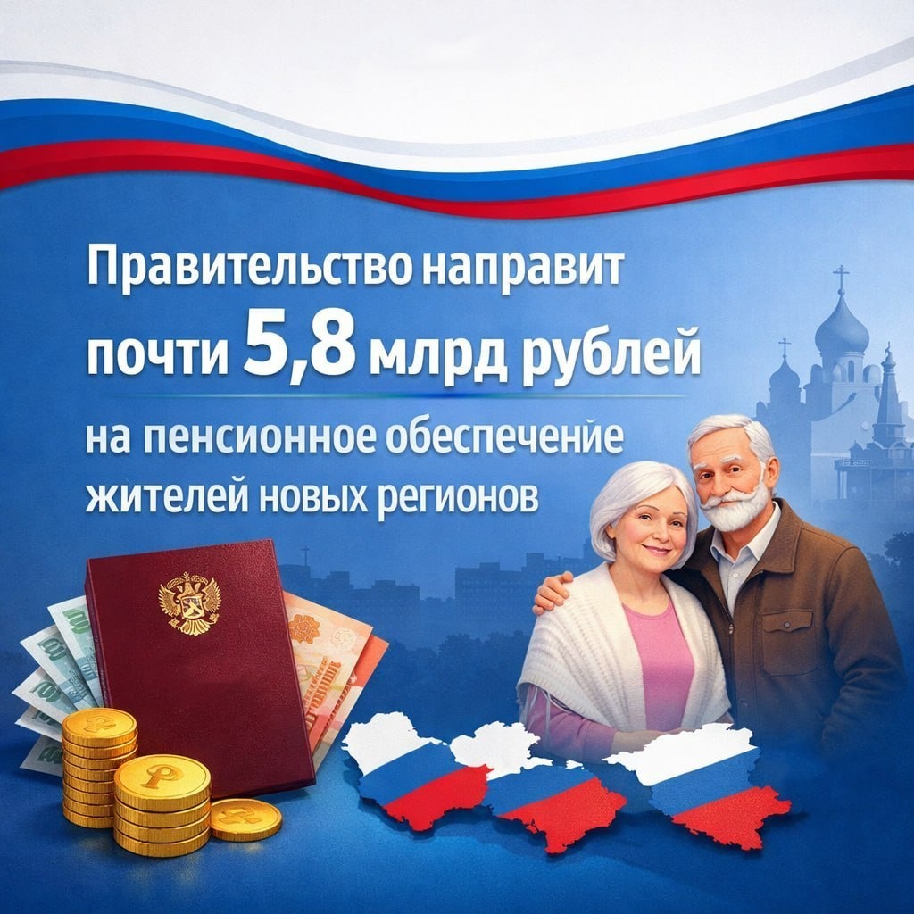 Правительство направит почти 5,8 млрд рублей на пенсионное обеспечение жителей новых регионов