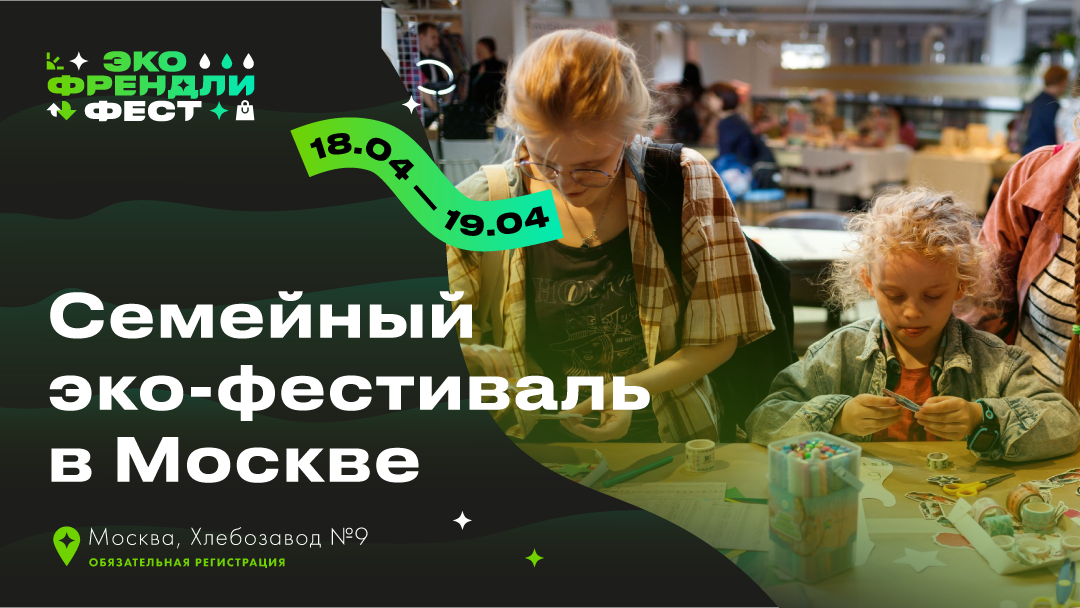 ООО «Зелёный патруль» инфопартнер программы «Эко Френдли Фест 2026». 18 и 19 апреля на территории пространства «Хлебозавод №9» (пространство «Бойлерная») в Москве пройдёт 12-й Эко Френдли Фест – городской фестиваль экопривычек, осознанного потребления и устойчивого образа жизни. В этот раз на фестивале будет представлена расширенная программа специально для детей 6+ лет. Детские активности в программе фестиваля: