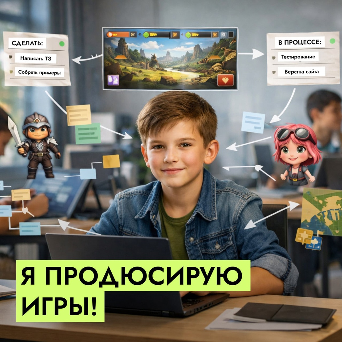 И одна из самых важных ролей в команде — продюсер Когда говорят о создании игры, сайта или приложения, чаще всего представляют программиста. Но любой цифровой проект — это работа команды. И продюсер здесь тот, кто помогает идее превратиться в результат. Продюсер понимает, что именно нужно создать, собирает идею в понятный план, распределяет задачи, следит за работой команды и помогает довести проект до конца. По сути, это человек, который держит в голове всю картину целиком. Почему ребёнку важно попробовать себя в этой роли? Потому что именно здесь может раскрыться его сильная сторона. Не всем детям интересно писать код или рисовать. Кому-то ближе роль лидера: организовать, направить, объединить команду и вести проект вперёд. И если ребёнку откликается именно такой формат, это уже важная подсказка. Значит, ему может быть интересно развиваться в сторону управления, продюсирования, организации процессов и командной работы. На Летних IT-каникулах дети пробуют разные роли в команде. Э