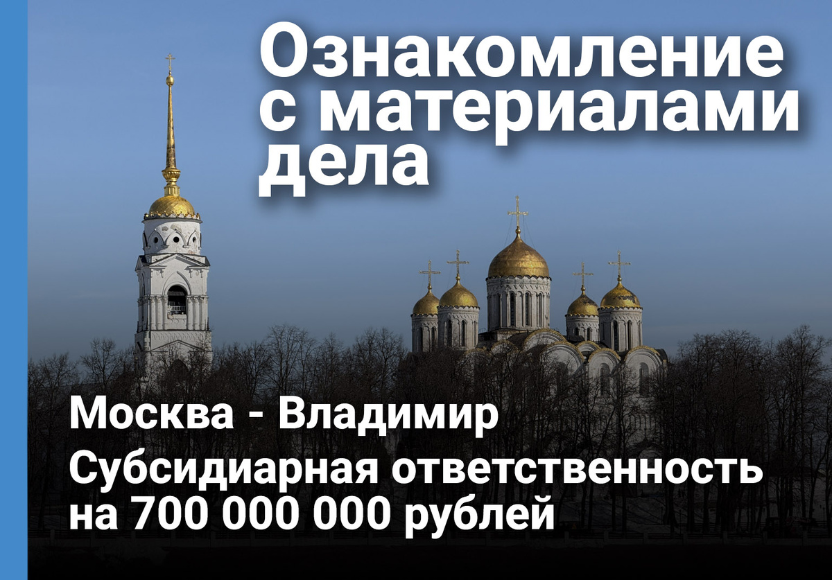 Ознакомление с материалами дела. Москва - Владимир. Субсидиарная ответственность на 700 миллионов рублей