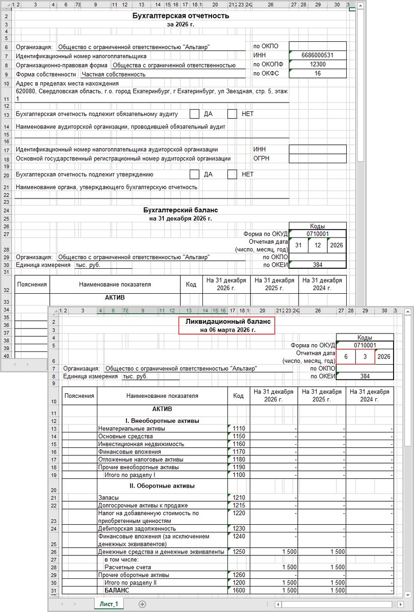 🤔 ✅ Шаг 1: После формирования и заполнения обычного бухгалтерского отчета нажмите кнопку Сохранить. Выберите нужный формат файла для последующего редактирования (например, эксель) и сохраните его на компьютер. ✅ Шаг 2: Откройте сохраненный файл на компьютере и произведите необходимые корректировки: • Удалите заголовочную часть документа; • Переименуйте файл в «Ликвидационный баланс»; • Скорректируйте дату, на которую составляется ликвидационный баланс. 📌Обратите внимание! Требование о сдаче отчета в формате электронных форматов при ликвидации по ст. 18 Федерального закона № 402-ФЗ не распространяется. В будущем налоговые органы могут рекомендовать определённые форматы, но на данный момент лучше уточнять детали напрямую у них. Если возникнут вопросы или потребуется помощь — пишите в комментариях или обращайтесь к специалистам! 📱 Оставайтесь с нами на связи — подписывайтесь на нас в Мах