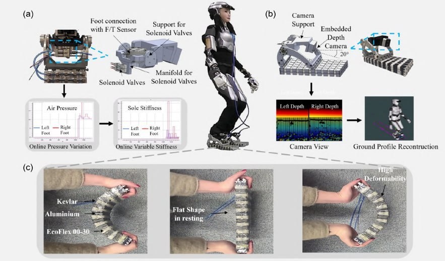 Большинство существующих гуманоидных роботов ходят на жестких стопах. Так ими проще управлять, но это приводит к тому, что они часто падают и теряют устойчивость. Ученые из Франции и Японии разработали для андроидов мягкие пневматические стопы, которые могут в реальном времени менять жесткость в зависимости от типа поверхности. Примерно как мышцы человеческих стоп регулируют тонус на разных покрытиях. Стопы изготовили из силикона, а для распознавания рельефа на передней части каждой стопы установили камеры глубины. Стопы способны переключаться от мягкого состояния к жесткому менее чем за 100 миллисекунд. Робота уже проверили в лабораторных условиях. Он успешно прошел дистанцию в два метра по гладкому полу, ковру и по ковру с разбросанными кабелями. Крамола | Подпишись на нас в MAX
