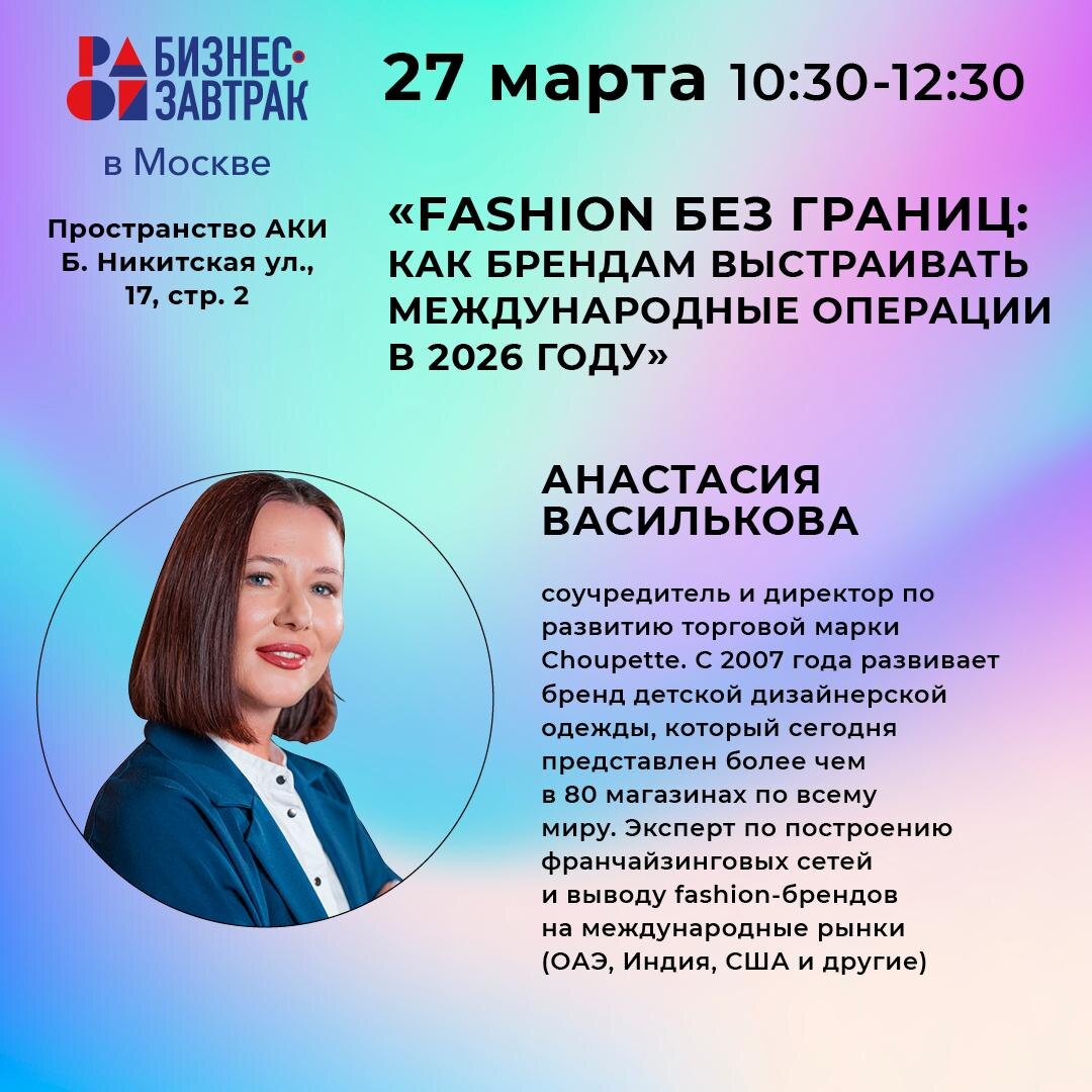 Глобальный рынок меняется быстрее, чем коллекции на подиумах. Новые логистические цепочки, параллельный импорт, локализация производств и растущая конкуренция — в таких условиях масштабирование за пределы одной страны требует уже не интуиции, а чёткой стратегии. 📍27 марта 10:30 — 12:30 Москва, Большая Никитская ул., 17, стр. 2, Пространство АКИ PROfashion приглашает на бизнес-завтрак, где эксперты и практики рынка разберут, как fashion-брендам выстраивать устойчивые международные операции в 2026 году. В фокусе: 🟤 выход на новые рынки: где искать точки роста; 🟤 эффективные модели международной дистрибуции; 🟤 логистика и управление цепями поставок в новой реальности; 🟤 финансовые и юридические нюансы работы за рубежом; 🟤 реальные кейсы брендов, уже работающих на международной арене. Формат бизнес-завтрака — возможность не только получить инсайты, но и обсудить свои задачи с коллегами по рынку в неформальной атмосфере. ↪️ Количество мест ограничено! Вход по предварительной реги