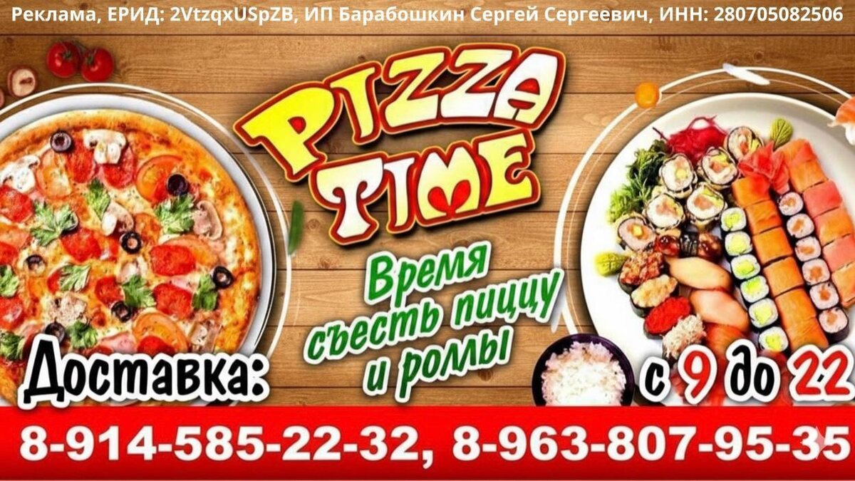 "! 🍕 Только сейчас, при заказе любого сета, набора роллов 🍣🍚🍙 вас ждет восхитительный комплимент от шефа – пицца «Пепперони» (300 гр) в подарок! 🎁 Позвольте себе наслаждение среди рабочих будней! 😉 Изумительное меню ждет вас здесь: 👉 http://foodpicasso.com/x/3042 Откройте для себя удобство заказа с нашим приложением! Получайте бонусы за каждую покупку, обменивайте их на любимую пиццу и дарите друзьям возможность насладиться вкусом – за каждого друга, зарегистрировавшегося по вашей ссылке, вы получите 100 рублей на счет! Специальные предложения: Скидка 10% на все меню! Акция "3+1": закажите три пиццы и получите четвертую в подарок! Акция действует с 01 марта по 30 апреля 2026 года, с понедельника по четверг с 9:00 до 17:00. Ваше мнение важно для нас! Оставьте отзыв – подарите нам лучик радости! "Пицца-Тайм" – это калейдоскоп вкусов: более 20 видов пиццы, изысканные роллы, ароматная лапша WOK, свежие салаты, сочная шаурма, аппетитные хот-доги и сытные завертоны. И не забу