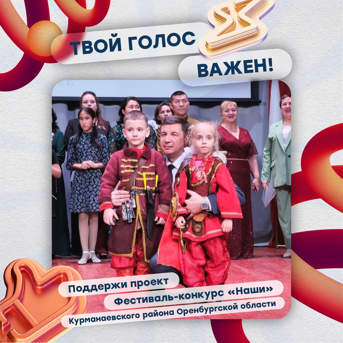 ! 👥 Проект главы Курманаевского района Василия Саулина «Наши» вошёл в число финалистов III Всероссийской муниципальной премии «Служение». Фестиваль-конкурс народного творчества, посвящённый участникам СВО, получил высокую оценку экспертов и вошёл в ТОП-10 в номинации «Великое наследие для будущих поколений». С самого начала, с осени 2023 года, проект нашёл поддержку у жителей региона и правительства Оренбуржья. Теперь решающее слово за народным голосованием! Поддержать фестиваль можно на портале Госуслуг до 6 апреля. Отдать голос можно только за один проект в рамках отдельной номинации. 📎 Ссылка для голосования: clck.ru/3SjVBe ⬅️ Премия «Служение» организована ВАРМСУ при поддержке Администрации Президента РФ. Церемония награждения состоится 21 апреля в рамках III Всероссийского муниципального форума «МАЛАЯ РОДИНА — СИЛА РОССИИ». Проголосуем за наших! 💙 🇷🇺 Мы в MAX #ОГУ #в_ОГУ #OSU