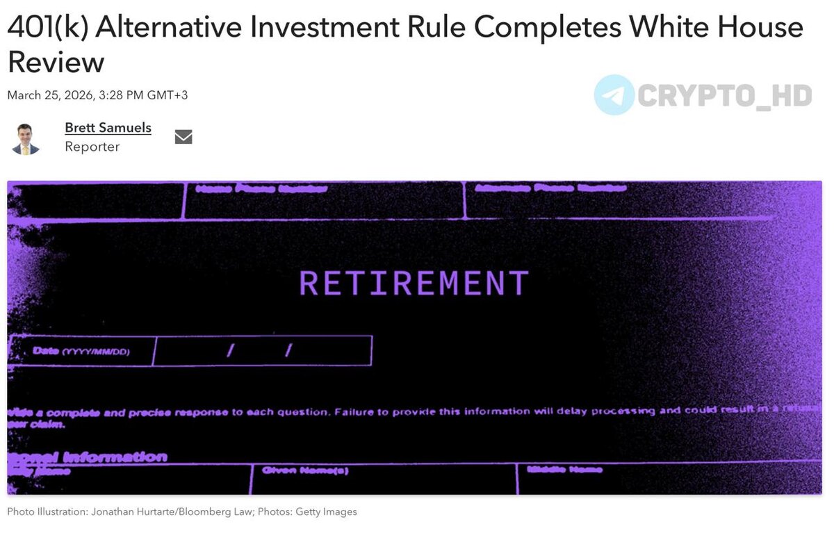 Проект правила по альтернативным инвестициям в 401(k) прошел финальную проверку в Белом доме. Министерство труда опубликует его в ближайшие недели. Скоро американцы смогут официально держать криптовалюту на пенсионных счетах наравне с акциями и облигациями. Вместе с криптовалютой откроются двери для private equity, private debt и инфраструктурных инвестиций. Масштаб события: пенсионный рынок стоимостью $12T. В августе 2025 года Трамп поставил задачу упростить доступ к альтернативным активам – в сентябре отменили старые ограничения 2021 года, которые сдерживали криптовалютные вложения в 401(k). Сейчас всё на финишной прямой. Crypto Headlines