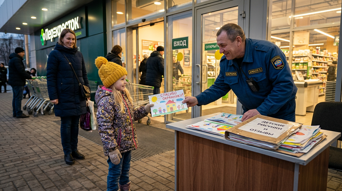 Мне тридцать два. Я кассир в аптеке. Смена двенадцать часов, дома — ребёнок, съёмная однушка, бывший муж с алиментами «как получится». Устала я так, что иногда даже чай завариваю с первого раза не в ту кружку. И когда пятилетняя дочь третью неделю подряд таскает рисунки охраннику в супермаркете, я думаю не про душевные тонкости. Я думаю: «Господи, только бы не приставала к человеку. Только бы не выглядело странно».