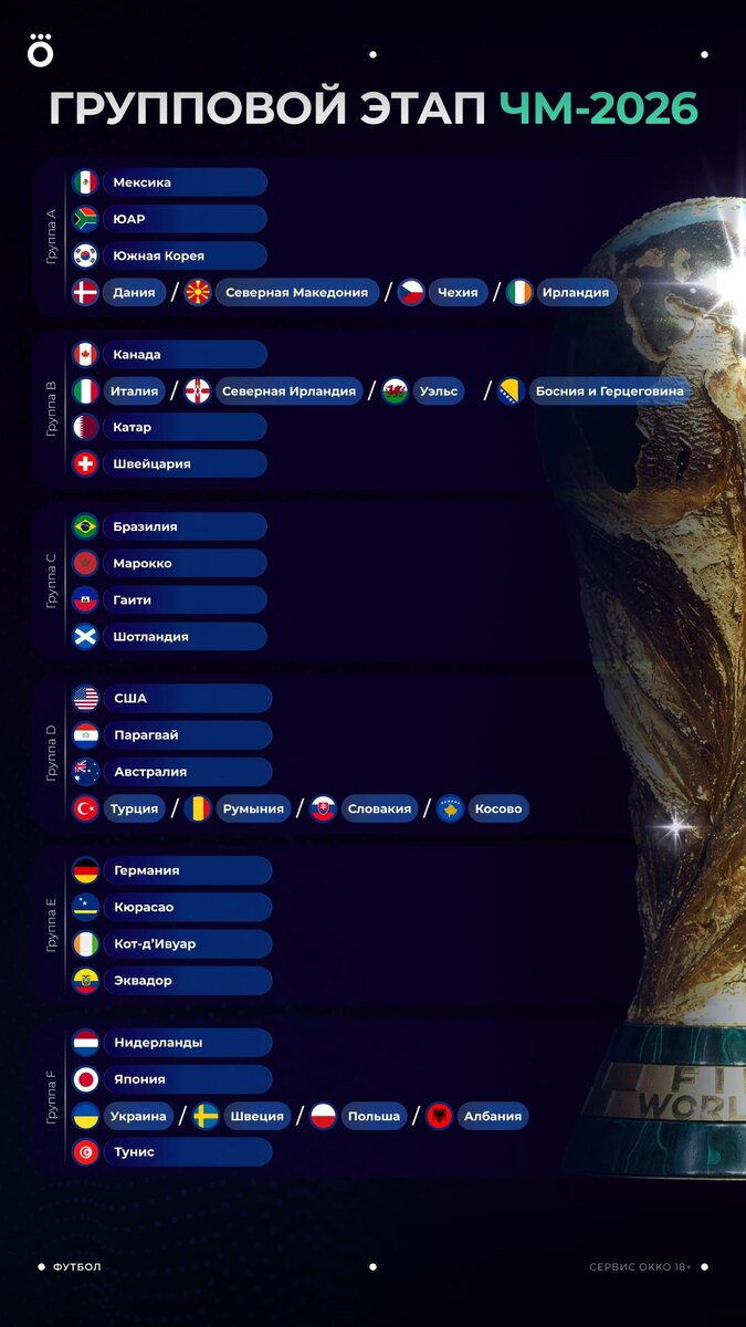 Совсем скоро узнаем полный список участников группового этапа ЧМ-2026 🏆