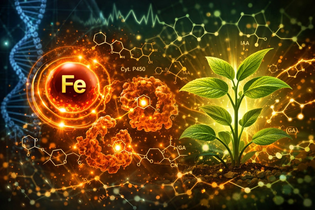 Мы продолжаем серию публикаций о влиянии микроэлементов на гормональную систему растений. Сегодня рассмотрим влияние Железа. Этот элемент в питании растений чаще всего связывают с фотосинтезом и синтезом хлорофилла. Однако его функция значительно глубже: Fe является ключевым компонентом ферментативных систем, обеспечивающих биосинтез фитогормонов. Многие ферменты, участвующие в образовании ауксинов, гиббереллинов и других регуляторов роста, зависят от присутствия железа. Оно входит в состав оксидоредуктаз и других ферментных комплексов, которые обеспечивают протекание реакций синтеза гормонов и их метаболизма. Без достаточного уровня Fe эти процессы замедляются или протекают неэффективно. В результате даже при внешне нормальном обеспечении макроэлементами растение может испытывать «гормональный дефицит». Снижается интенсивность роста, замедляется деление клеток, ухудшается развитие молодых органов. Особенно чувствительны к этому точки роста, где гормональная регуляция играет ключевую