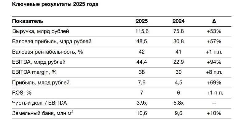 Согласно отчетности по МСФО, по итогам 2025 года выручка девелопера достигла ₽115,6 млрд , валовая прибыль составила ₽48,5 млрд, а чистая прибыль — ₽7,6 млрд. • Выручка в столичном регионе выросла в 2,7 раза; • Земельный банк достиг 10,6 млн м² реализуемой площади. • При этом валовая рентабельность сохранилась на уровне 42%, а рентабельность по чистой прибыли составила 7%. • По итогам года «Брусника» сохранила 7-е место в России по объему текущего строительства. • Девелопер вывел на рынок 32 новых объекта общей площадью 701 тыс. м²; • Объем текущего строительства вырос на 13% — до 1,7 млн м². Никита Адамаов, заместитель генерального директора девелопера по экономике и финансам: "В 2026 году Брусника продолжает работу над поддержанием финансовой устойчивости и повышением операционной эффективности. Мы детально прорабатываем экономические модели проектов и адаптируем инструменты продаж для обеспечения ритмичности денежных поступлений.