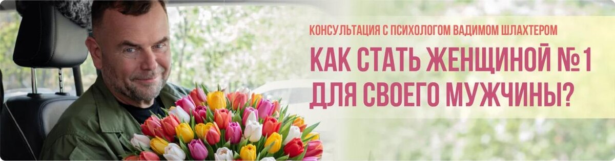 ! 💐 Эксклюзивная консультация (1 ЧАС) психолога Вадима Шлахтера. Только для женщин, которые: — хотят усилить свою значимость в отношениях; — устали быть «удобной» и хотят стать желанной; — хотят вернуть внимание и интерес мужчины; — хотят научиться управлять динамикой отношений Стоимость всего 5 900 рублей Можно купить консультацию себе, или подарить ей 😉 Подробности на сайте: https://shlahter.ru/prokachka https://shlahter.ru/prokachka https://shlahter.ru/prokachka